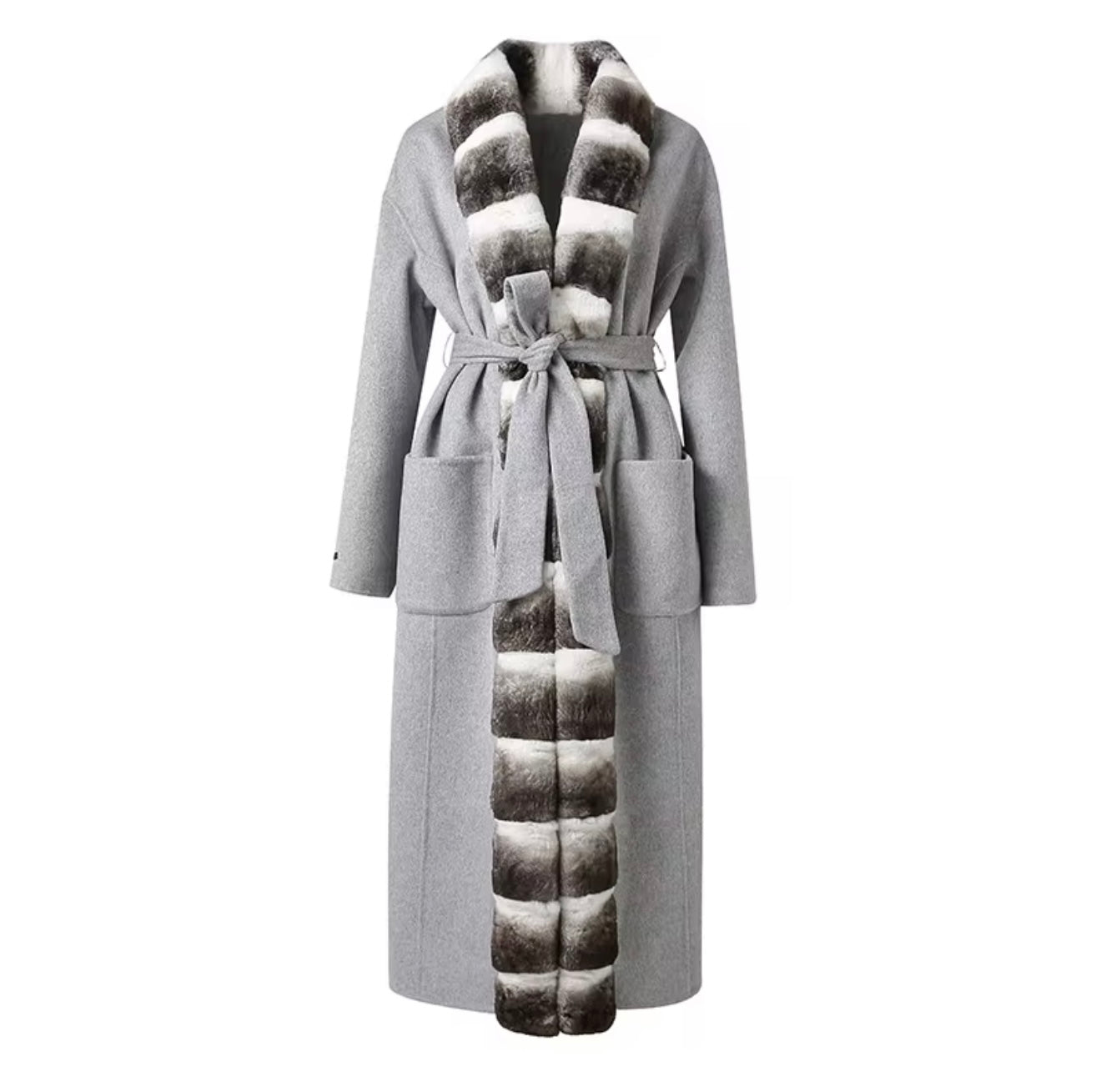 Rex rabbit fur – Plush fur trims along the collar and front for refined sophistication