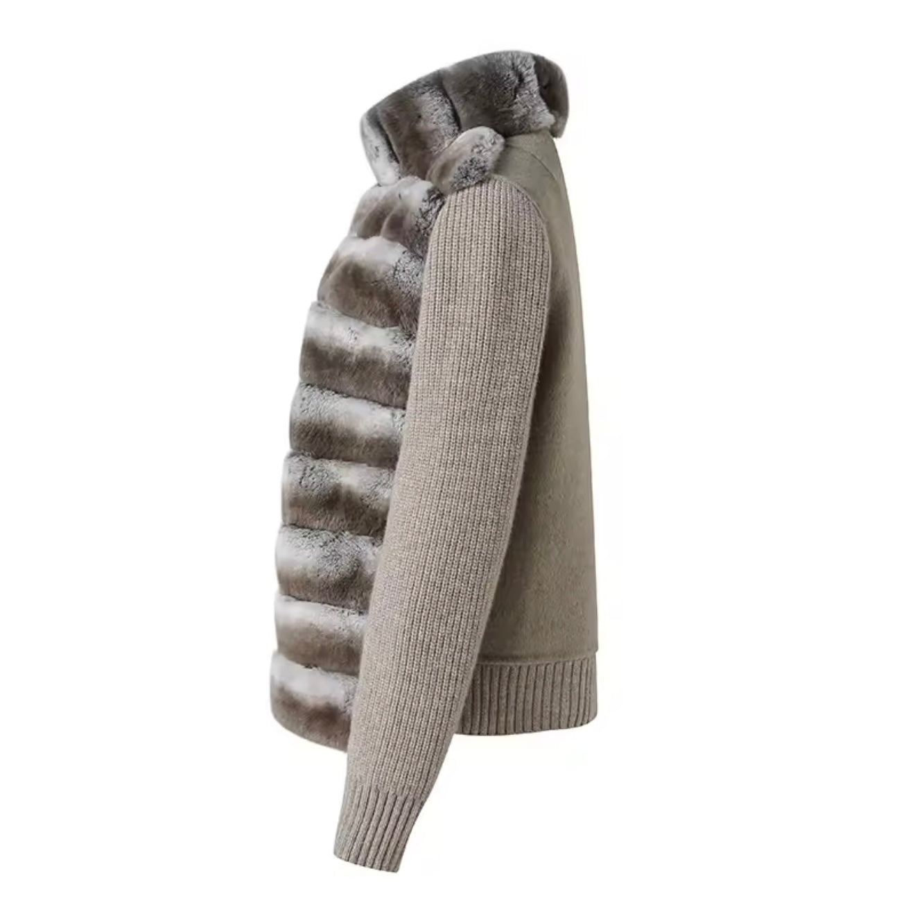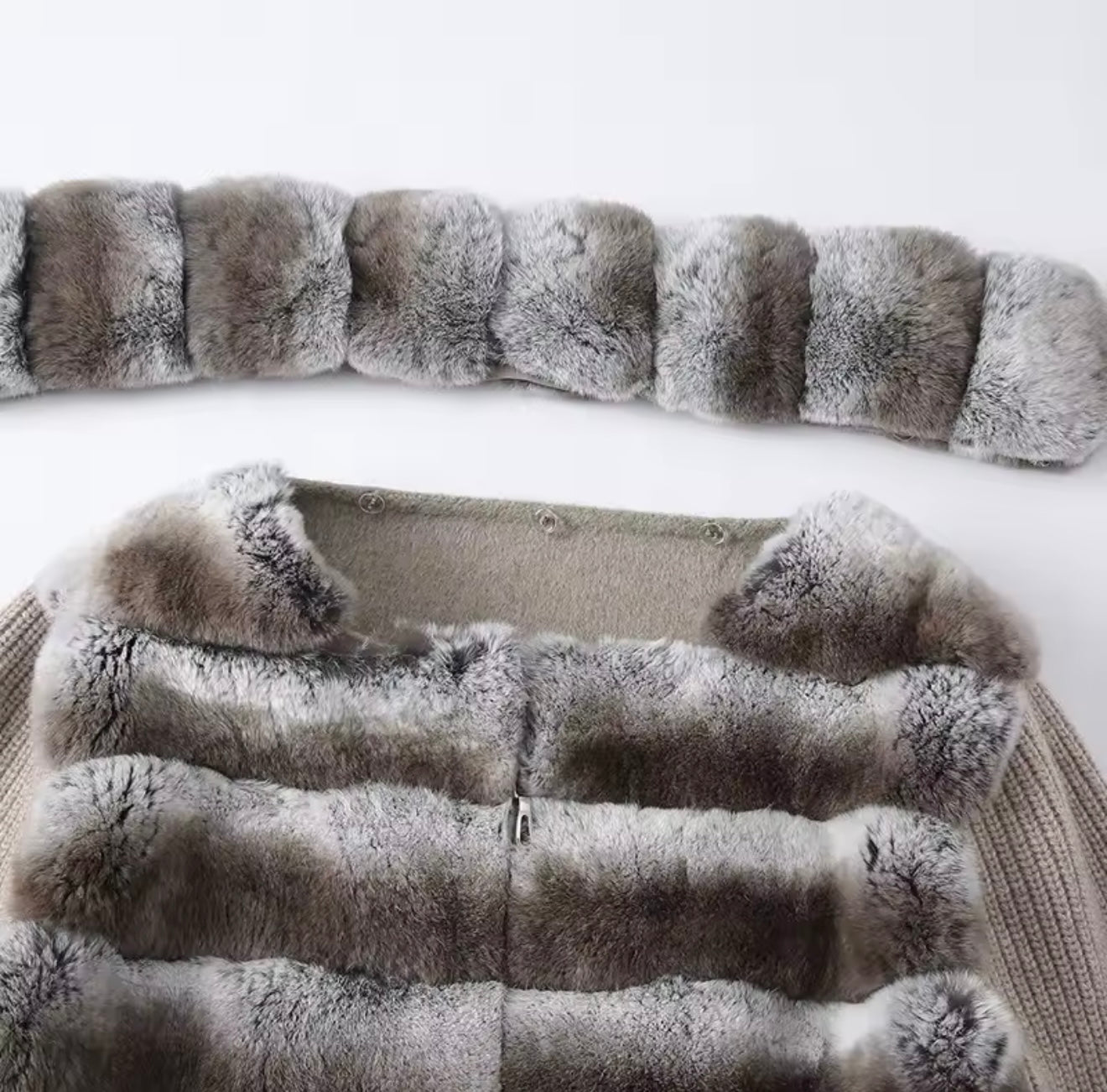 The Verella is your go to for comfort luxury. This bomber jacket is made with plush Rex rabbit fur and a detachable collar offers versatile styling making from elegant to casual quickly. The Jacket has clean lines and a muted tone keeping it timeless, while the texture does all the talking.